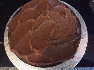 I actually ended up with all three layers of the cake baked and decided it was just too big and put one layer in the freezer! I also used self-raising flour rather than plain flour and raising agents, and milk chocolate rather than plain - which would have made the cake sweeter but actually it wasn't an incredibly sweet cake in itself, but the icing was. Mmm, the icing....