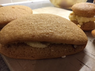 Who remembers whoopie pies? They were all the rage five or six years ago; a friend gave me a whoopie pie baking tin and recipe book and I made  walnut whip and chocolate ones decorated to look like Christmas puddings.